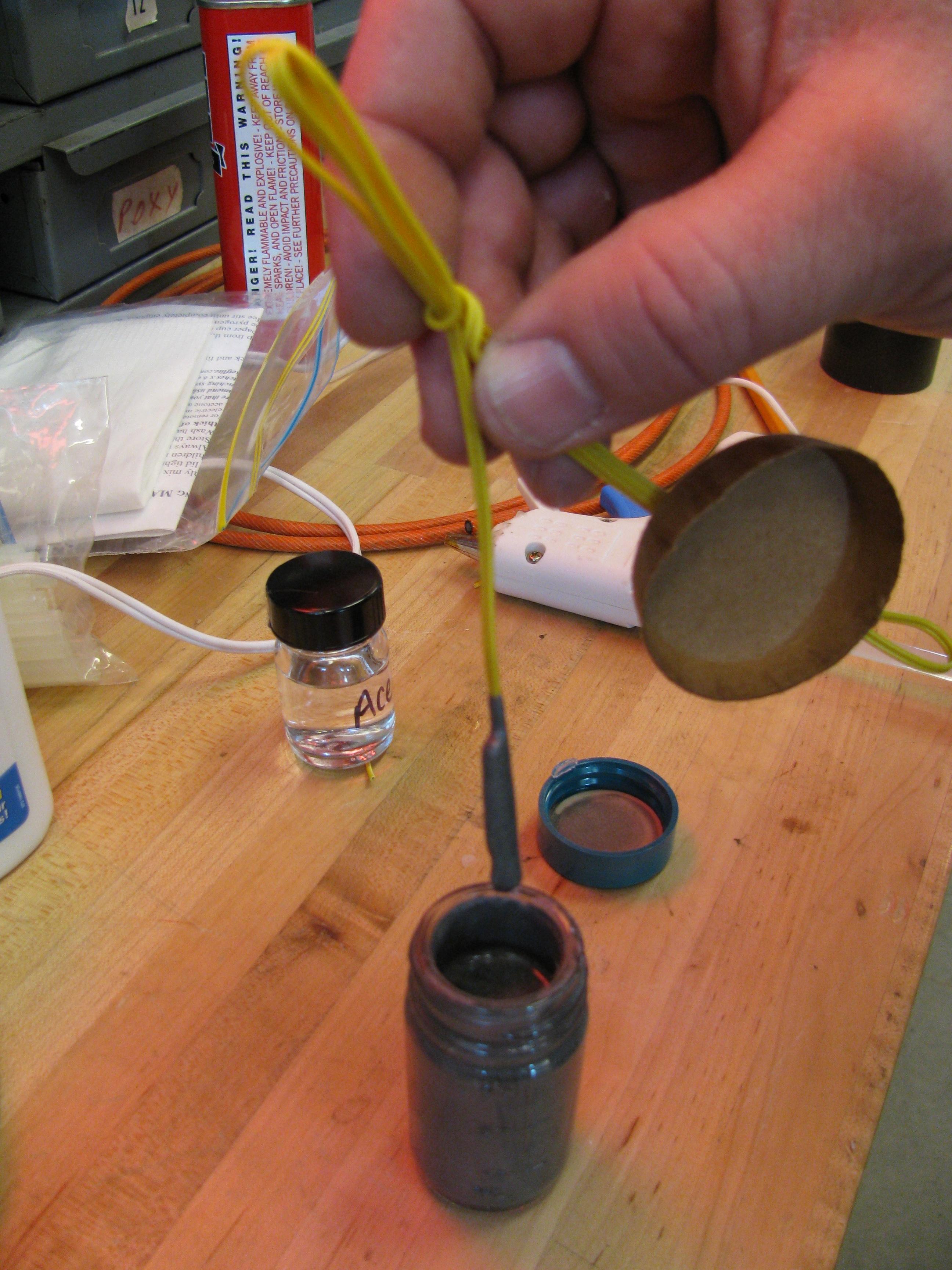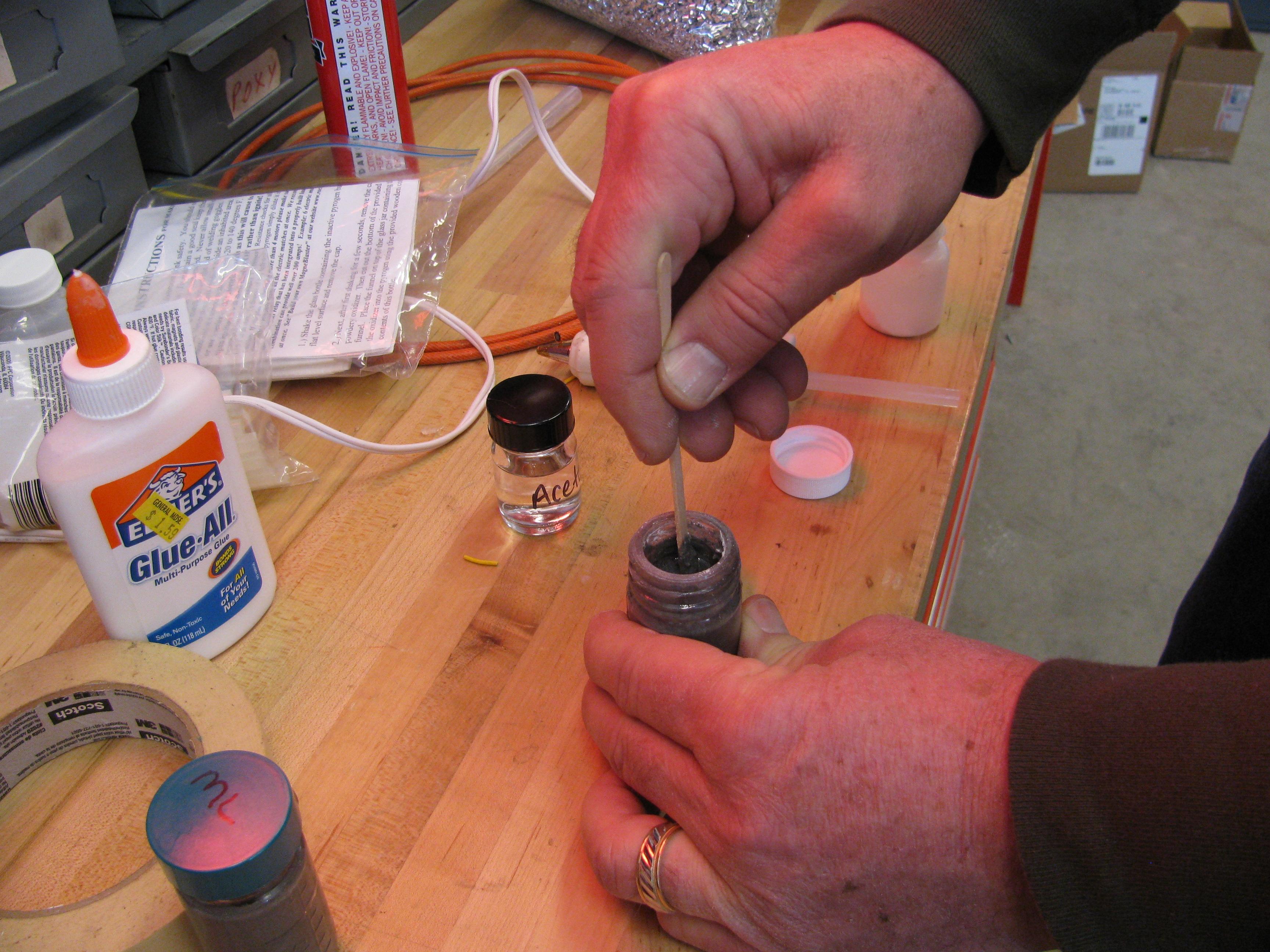 Rocket Igniter Kit – 40 grams of our highest thermal energy releasing (5,400F), longest burning, pre-measured,  two part  initiator composition, plus acetone, mixing equipment and instructions.  This initiator composition can only be used with our ML series initiator wires for a complete rocket igniter kitThe All-Fire rating for the ML-KIT initiator composition is 5 amps @ 12 VDC. (This product does not contain any lead, mercury, sulfur, sulfides or phosphorus.)